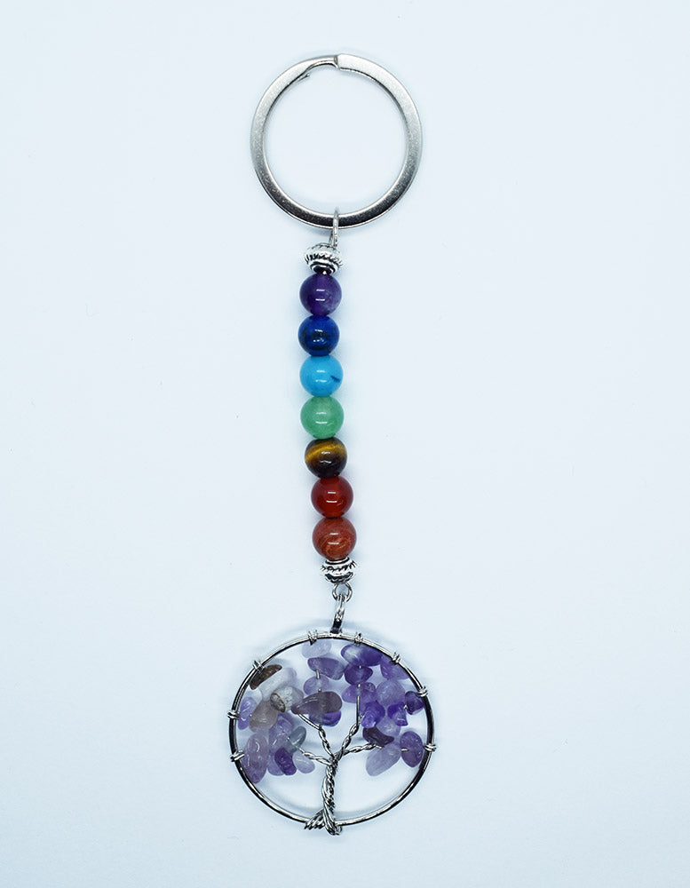 Beautiful Amethyst Crystal Tree Of Life Keyring.