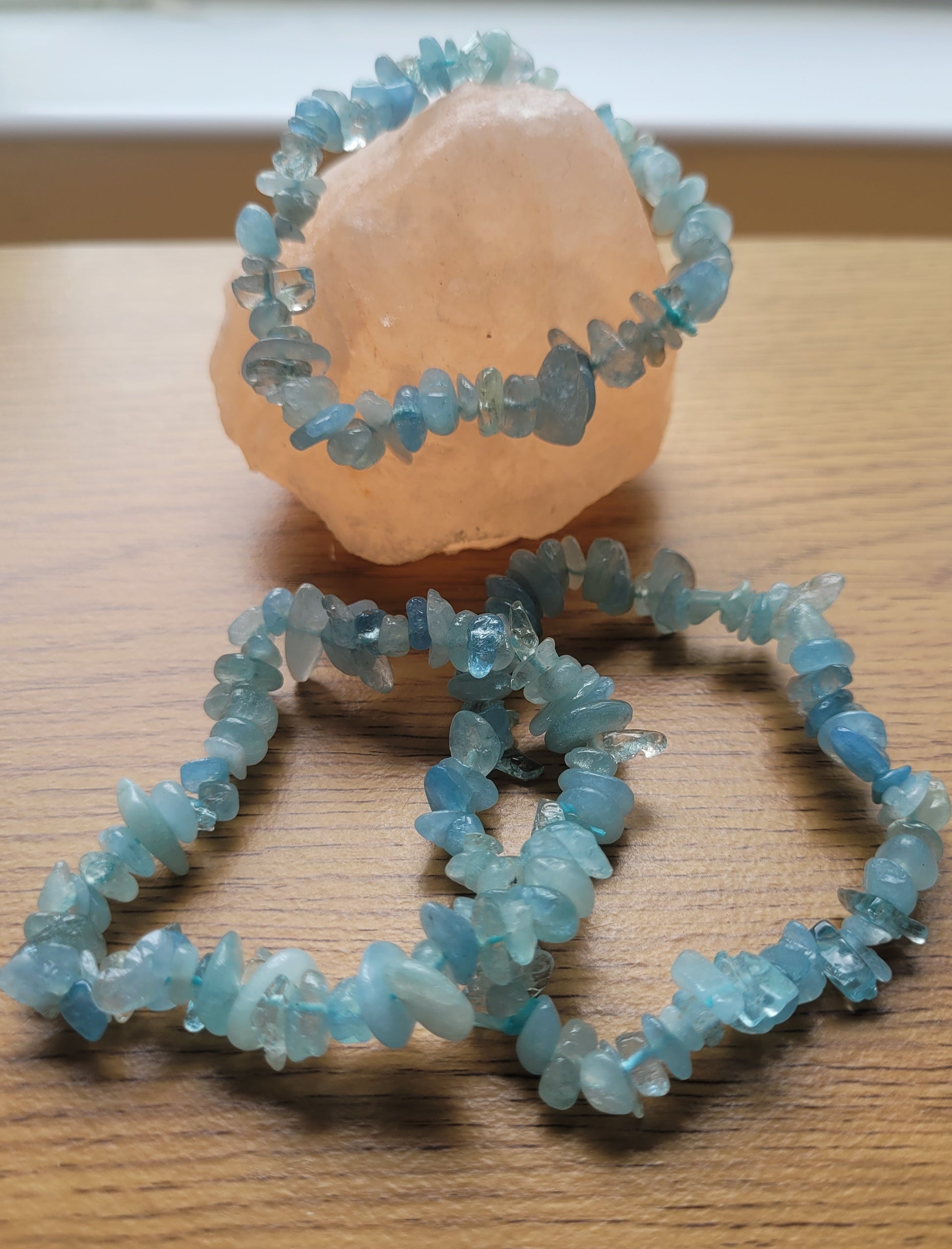 These pretty Aquamarine crystal chips bracelets look amazing on their own, or mixed with silver jewellery and other colour crystal chip bracelets. Build the look you want! We really like these with the moonstone!