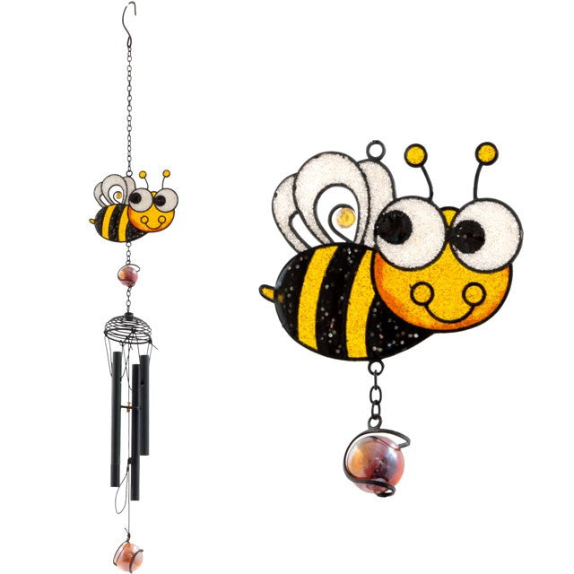 A beautiful hand crafted metal, glass & resin windchime in a Bee design. Ethically sourced.- Suitable for indoor and outdoor display.