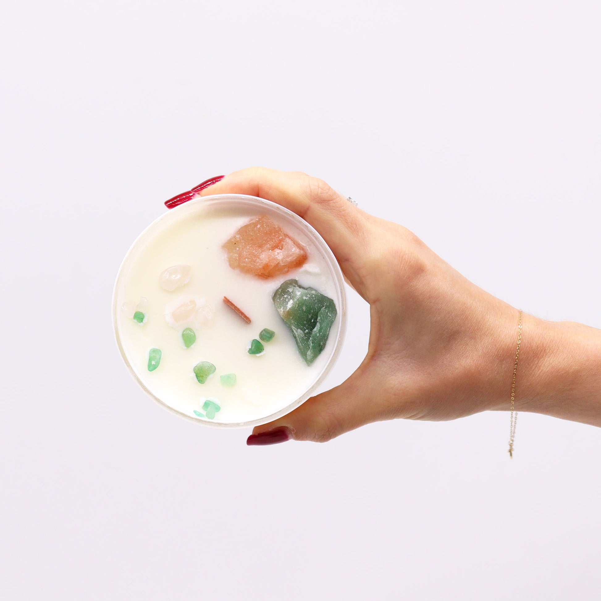 Light this candle to create an atmosphere of love and emotional balance in your space. Allow the enchanting fragrance of "Rose Musk" to fill your heart with warmth, while the energy of Rose Quartz and Crystal Jade crystals nurtures your capacity for love and compassion.