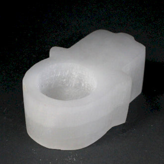Selenite Candle Holders are shiny and sometimes with whiter areas. Top of each candle holder is polished and the underside is cut flat.