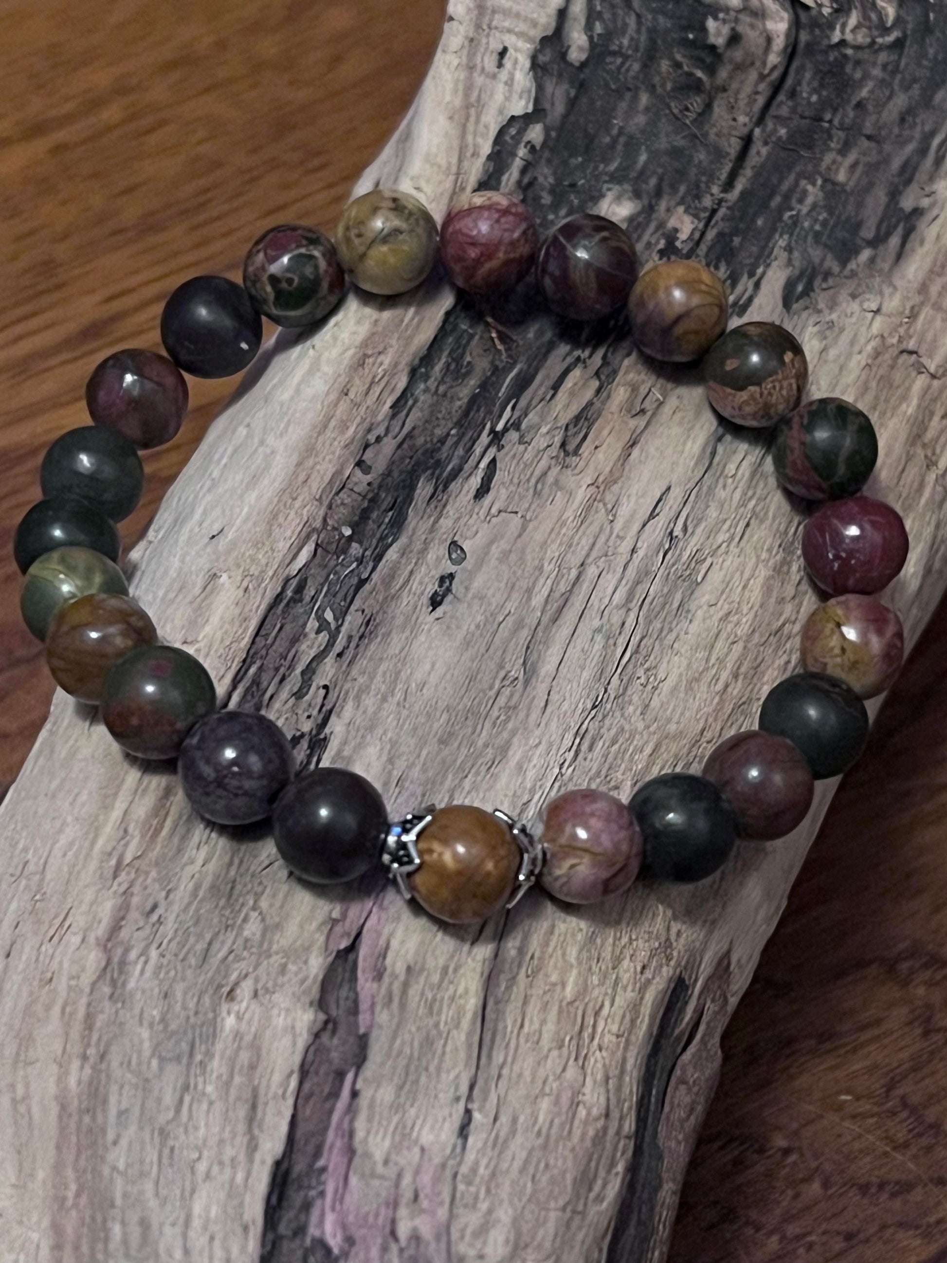 Picasso Jasper is a powerful healing stone; it is said to promote weight loss, regulate metabolism, and it is useful for eye problems and infections.