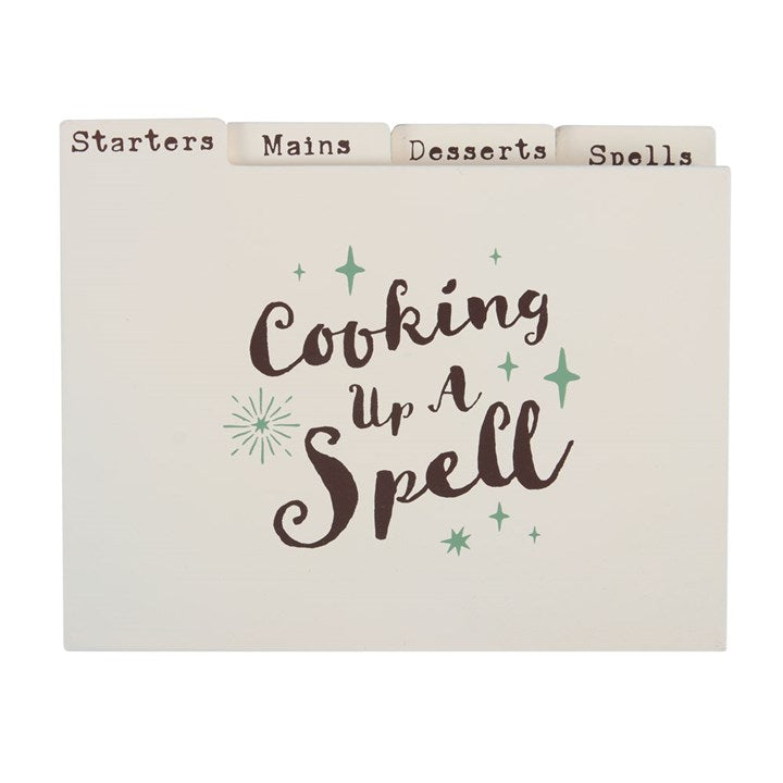 Every kitchen witch needs a safe place to keep her special recipes and favourite spells. This wooden recipe box features an engraved cauldron illustration with 'Kitchen Witch - Spells and Recipes' text and MDF inserts for keeping Starters, Mains, Desserts and Spells tidy and organised. Ideal for any witch that loves a homemade meal.
