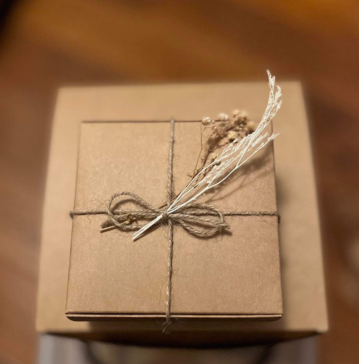 Each box comes filled with eco-friendly recycled paper filling then are tied with twine and finished with a couple of sprigs of real dried flowers, making them perfect to gift.