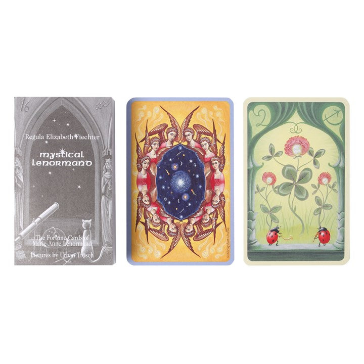 This beautiful pack of oracle cards has been modelled on the famous fortune telling cards of Mlle Marie-Anne Lenorman. With images painted by Urban Trosch using the classical Eitempera technique, the cards are brightly coloured and captivating in design. Pack contains 36 cards with instruction booklet.
