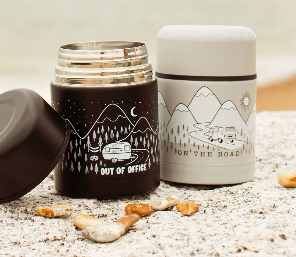 This everyday essential is adorned with a whimsical mountain illustration and the quote 'out of the office'.Featuring a simple monochrome colourway.Complete with a leak-proof lid and double wall design to keep hot food warmer for longer.