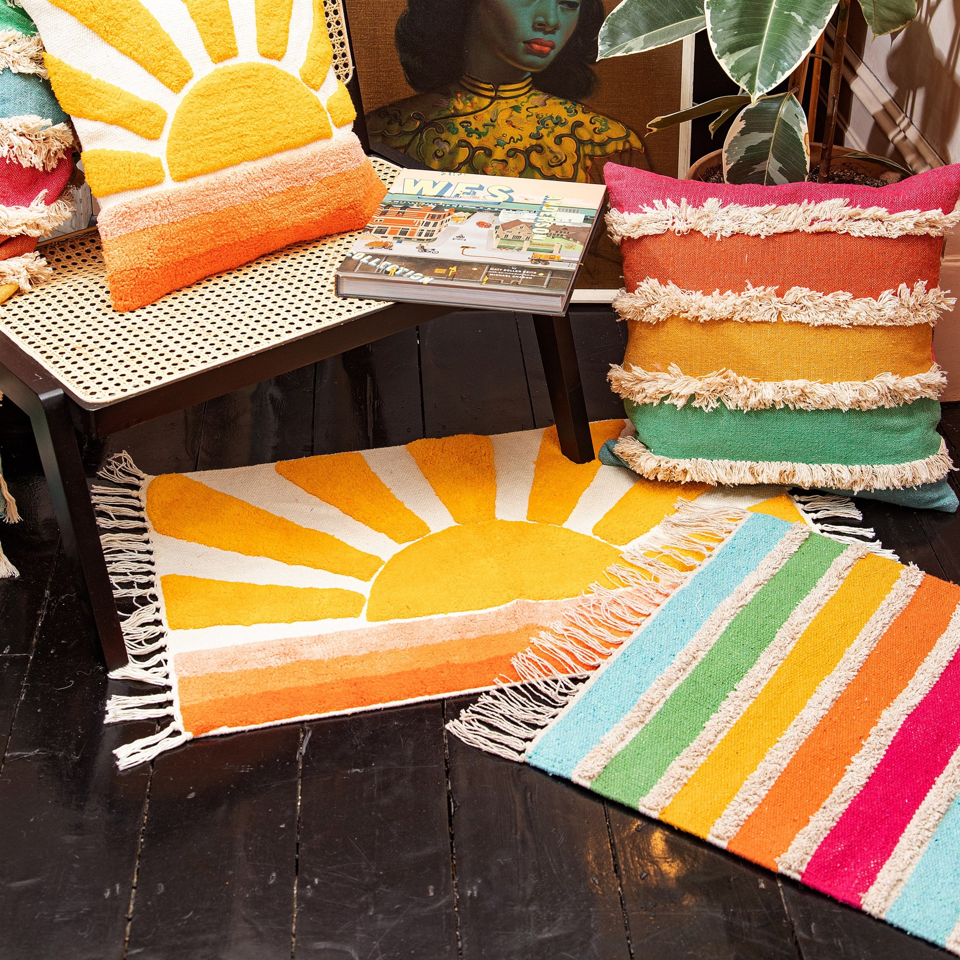 Bright and beautiful stripe rainbow rug from Sass & Belle