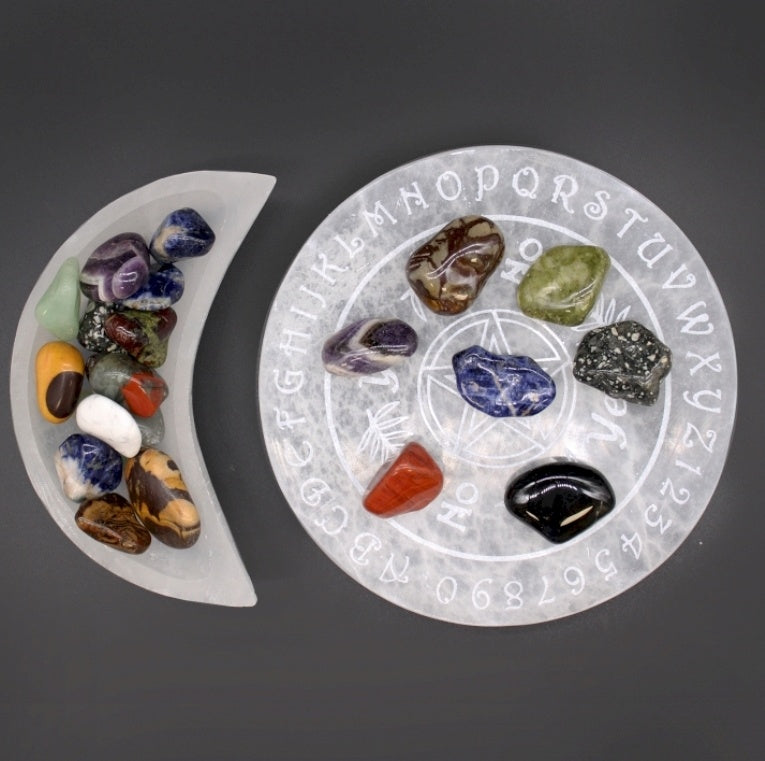 Our range of selenite plates are cut and carved by hand; you will particularly appreciate the attention to detail.