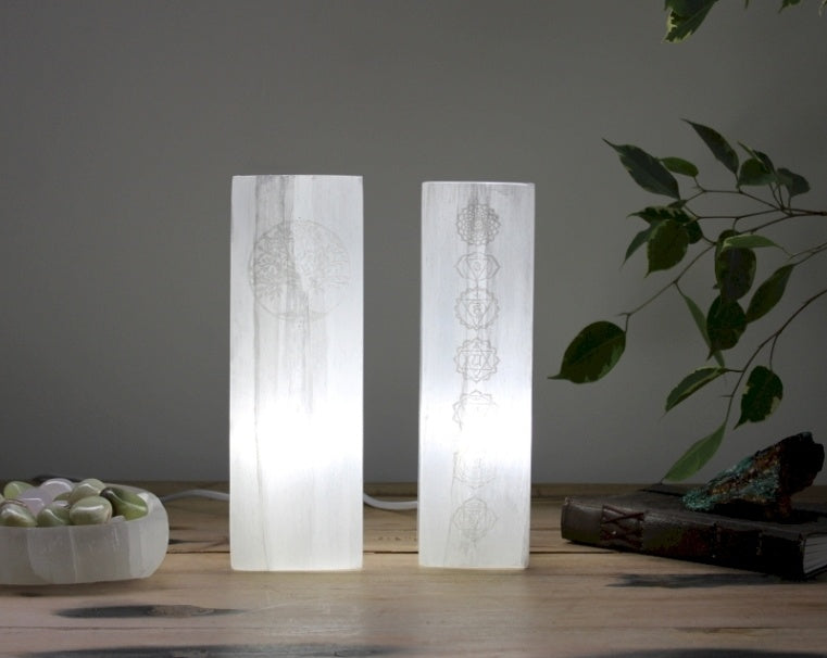 Selenite Block Lamps measure approximately 25cm, Selenite also has calming properties which makes it ideal for meditation or spiritual work. Selenite is known for its purifying properties and promoting restful sleep, so they will be perfect for your living room, or as a bedside lamp on a bedside table, for example.