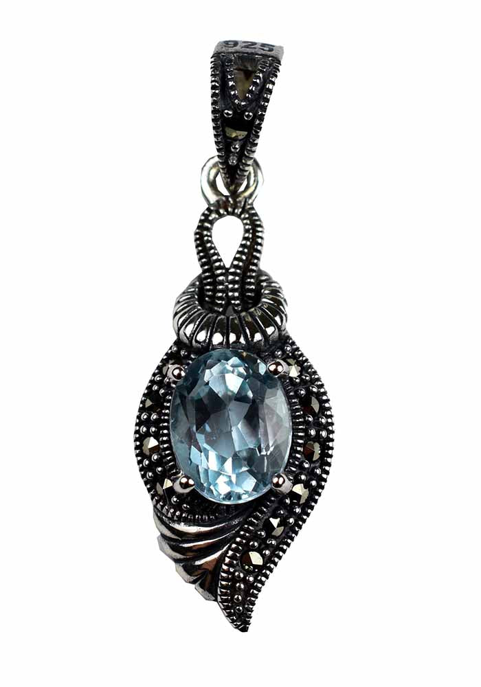 Simply beautiful, this marcasite pendant boosts stunning topaz stones to add to the elegance.