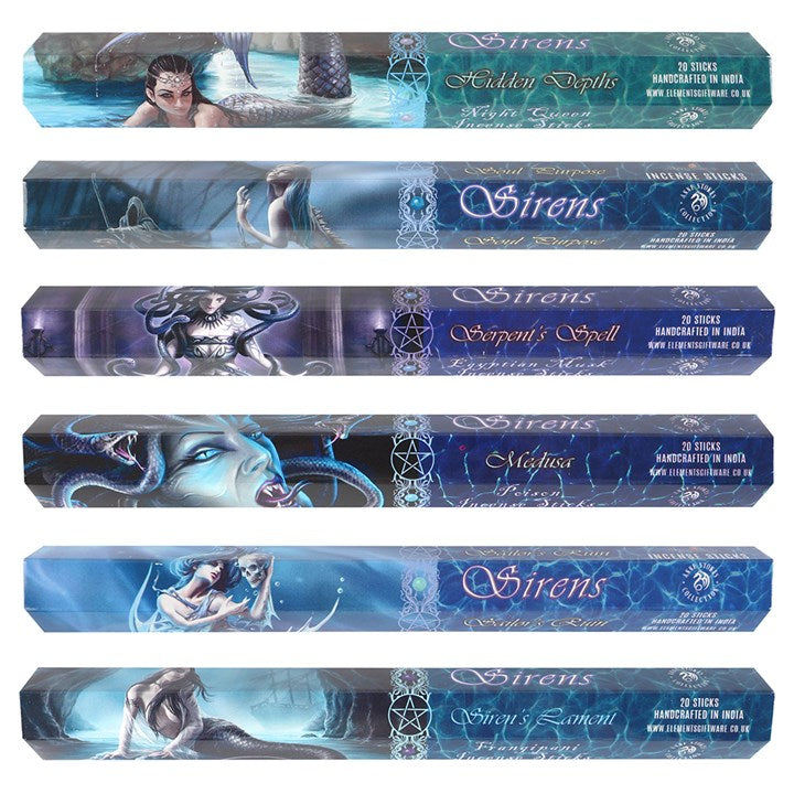 A gift pack from the Sirens Anne Stokes incense range. It includes 6 packs of incense, one of each Sirens scent.