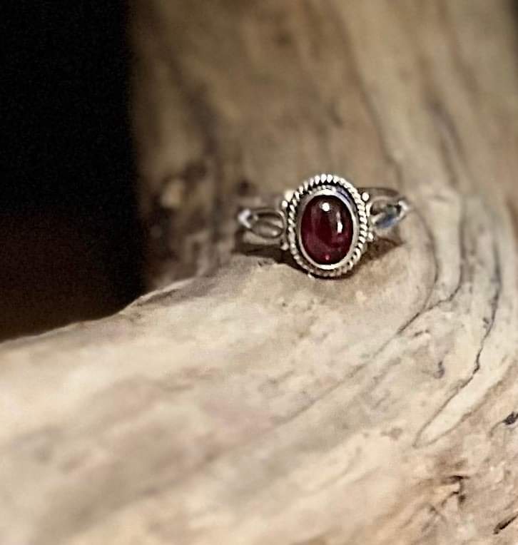A stunning 925 sterling silver ring with Garnet gemstone.