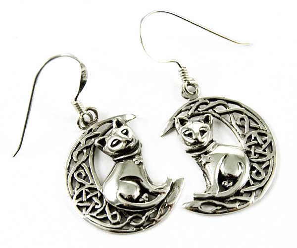 Sterling Silver Cat on Moon Earrings Designed by Lisa Parker