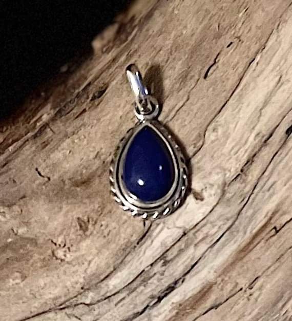 A beautiful blue Lapis Lazuli gemstone set in a 925 sterling silver teardrop shape pendant.