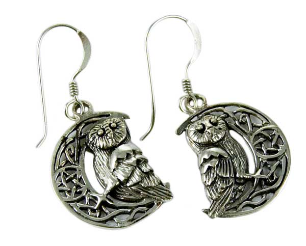Designed by Lisa Parker, these gorgeous sterling 925 silver, feature a beautiful owl sitting on a celtic style moon.