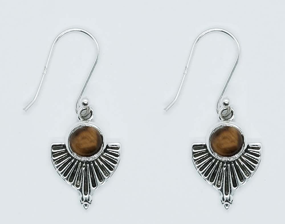 A beautiful pair of sterling silver, 925 stamped earrings complete with Tiger's Eye crystal.