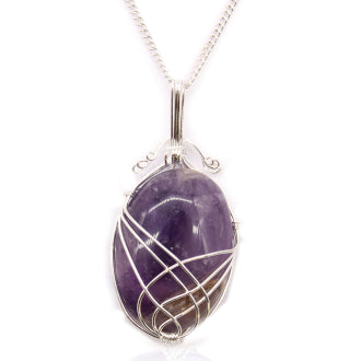 Swirl Wrapped Indian Crystal Necklace - Amethyst