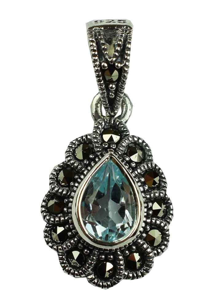 A sparkling topaz stone sits in the beautiful marcasite teardrop. A truly stunning piece, perfect for that special gift.