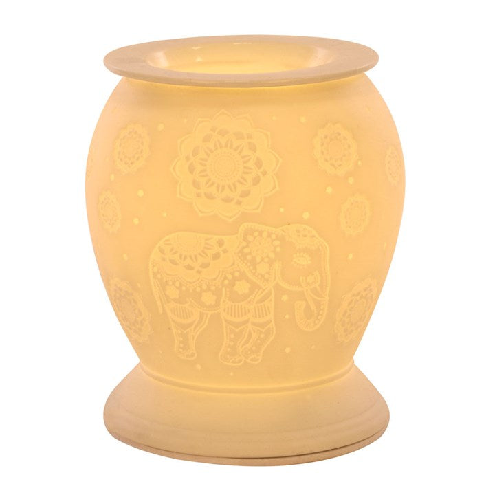 This white ceramic oil burner and wax melt warmer features a charming elephant design on the front. The elephant is illuminated by a warm sunrise glow when the burner is switched on, complimenting the fresh scents infusing into the home. Simply dilute a few drops of fragrance oil in water and add to the top dish of the burner, or place wax melts in the dish and switch the burner on.